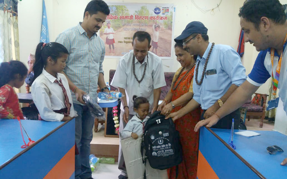जेसीजले एक कार्यक्रमका बीच मौलाकोटका २८ जना विद्यार्थीहरुलाई झोला, कापी, कलम, इरेजर, कटर, टिफिन बक्स, बोतल, ज्याकेट लगायतका सामग्रीहरु वितरण गरेको हो ।