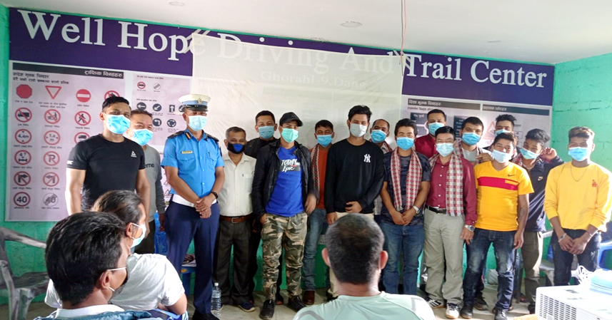 दाङ, २६ असोज । वेलहोप ड्राइभिङ तथा ट्रायल सेन्टरले ड्राइभिङ सिकिरहेका विद्यार्थीहरुका लागि ट्राफिक सचेतना सम्बन्धी अभिमुखीकरण सम्पन्न गरेको छ । जिल्ला ट्राफिक कार्यालय दाङका प्रमुख इन्सपेक्टर थम्मन जिसीको प्रमुख आतिथ्यतामा भएको कार्यक्रममा ड्राइभिङ सिकिरहेका र उत्तीर्ण गरी ८५ बढी विद्यार्थीहरुको सहभागिता रहेको थियो ।