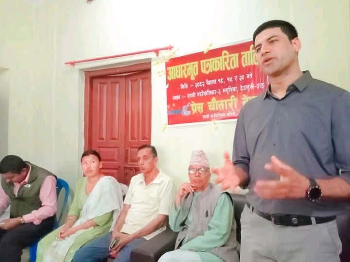 चाैतारी राप्ती गाउँपालिका कमिटी अध्यक्ष हुमा सुनारको अध्यक्षतामा भएको तालिम उद्घाटन कार्यक्रममा नेकपा एमाले दाङका सदस्य धर्मराज अधिकारी लगायतका वक्ताहरूले शुभकामना मन्तव्य व्यक्त गरेका थिए । सो कार्यक्रममा प्रेस चाैतारी नेपालका निर्वतमान केन्द्रीय सदस्य सन्तोष कुमार गुप्ता, प्रदेश सदस्यहरू वासुदेव न्याैपाने, शान्ता खनाल, दाङ जिल्ला उपाध्यक्ष लक्ष्मी पोख्रेल लगायतको उपस्थिति रहेको थियो । राप्ती गाउँपालिकाका १३ जना प्रशिक्षार्थीहरूको सहभागीता रहेको तालिमको प्रशिक्षकमा प्रेस चौतारी नेपालका केन्द्रीय सदस्य दुर्गालाल केसी, प्रदेश इन्चार्ज टिका बस्नेत, पत्रकार महासंघ लुम्बिनी प्रदेश सदस्य ओमप्रकाश गुप्ता, प्रेस चौतारी नेपालका निर्वतमान केन्द्रीय सदस्य सन्तोष कुमार गुप्ता, प्रदेश सदस्य वासुदेव न्याैपाने लगायत रहनु भएको छ ।