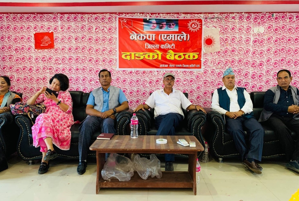 बैशाख, २८ घोराही । नेकपा एमाले जिल्ला कमिटी दाङको वैठक पार्टी कार्यालय भरतपुर घोराहीमा सम्पन्न भएको छ । जिल्ला कमिटिका अध्यक्ष शिवकुमार आचार्यको अध्यक्षता एवम् जिल्ला ईञ्चार्ज नरुलाल चौधरीको प्रमुख आतिथ्यतामा भएको बैठकले महासचिव शंकर पोख्रेलको उपस्थितिमा जेठ ६ गतेको नेत्र स्मृति दिवस तुलसीपुरमा र जेठ ७ गते स्थानिय जनप्रतिनिधिहरुको भेला र प्रशिक्षण घोराहीमा गर्ने निर्णय गरेको छ ।