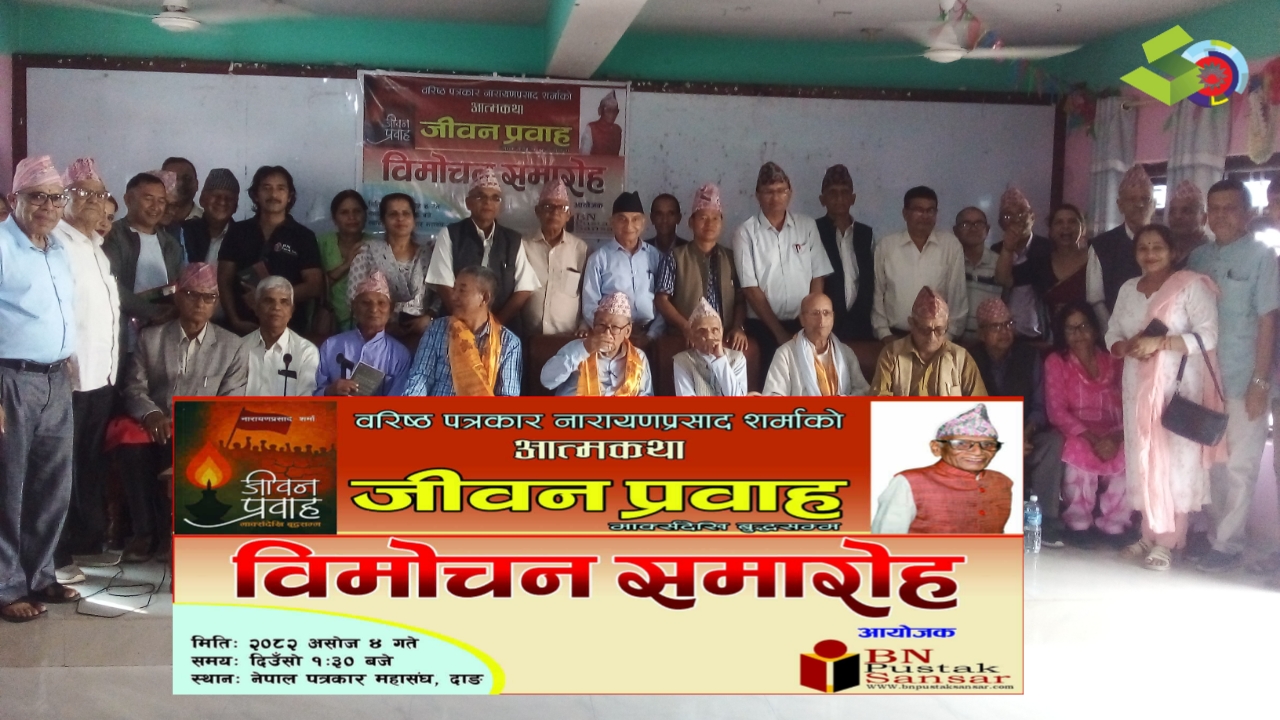 घोराही, ४ असाेज । वरिष्ठ पत्रकार नारायणप्रसाद शर्माद्वारा लेखिएको आत्मकथा ‘जीवन प्रवाह’ घोराहीमा शनिबार लोकार्पण गरिएको छ। बिएन पुस्तक संसारको आयोजनामा सम्पन्न कार्यक्रम समाजसेवी एकराज शर्माको अध्यक्षता, विपश्यना साधक तथा प्रशिक्षक दोर्जी छिरिङ शेर्पाको प्रमुख आतिथ्यता र पूर्व राजदूत तथा परराष्ट्रविद् हिरण्यलाल श्रेष्ठको विशिष्ट आतिथ्यतामा सम्पन्न भएको थियो।