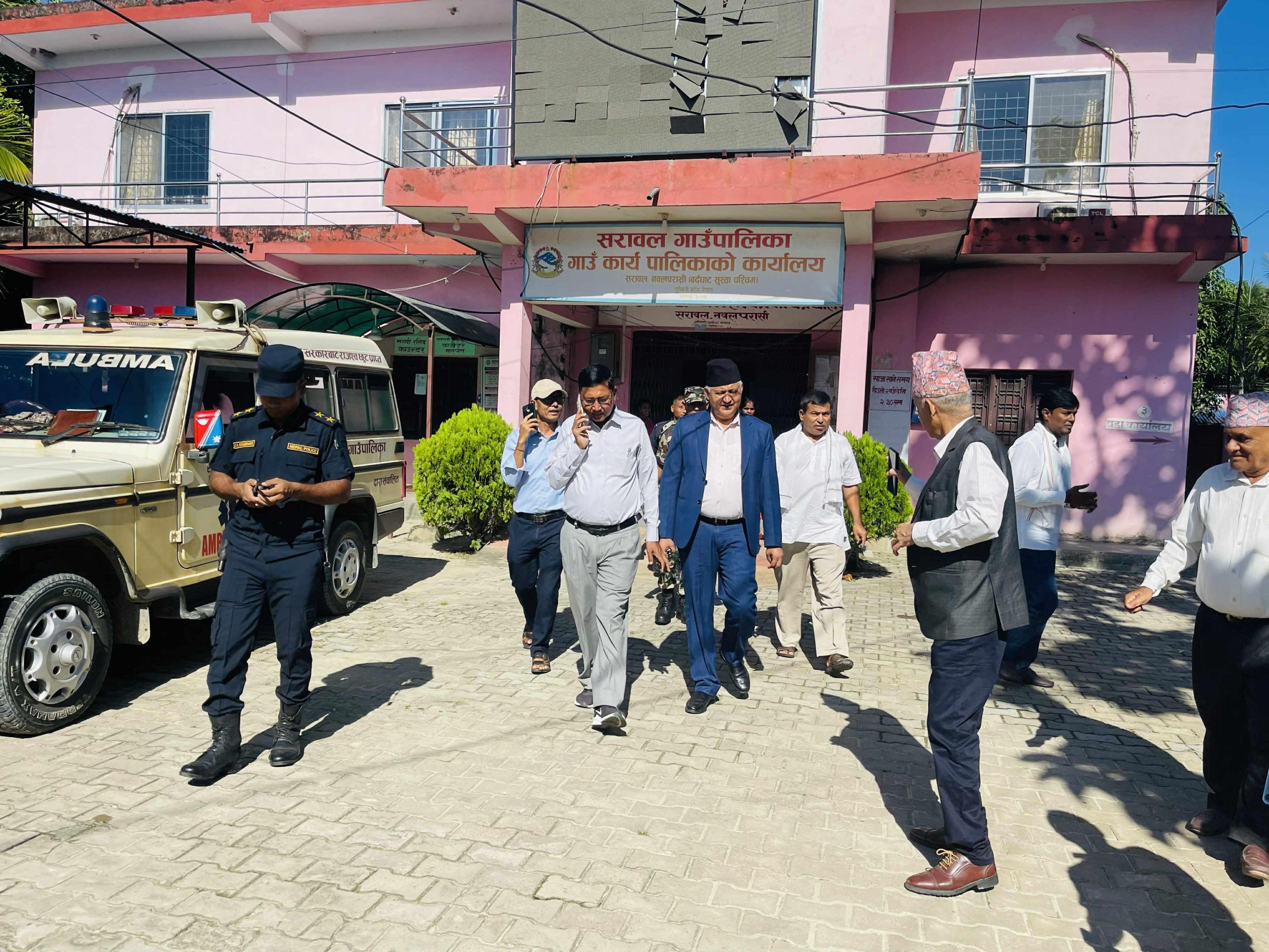 यसअघि अर्घाखाँची, प्यूठान, दाङ, बाँके र रुपन्देही जिल्लाका प्रभावित कार्यालयहरूको अनुगमन गरिसक्नुभएका मुख्यमन्त्री आचार्यले शुक्रबार पश्चिम नवलपरासीका विभिन्न प्रभावित कार्यालयहरूको निरीक्षण गर्नुभएको हो ।