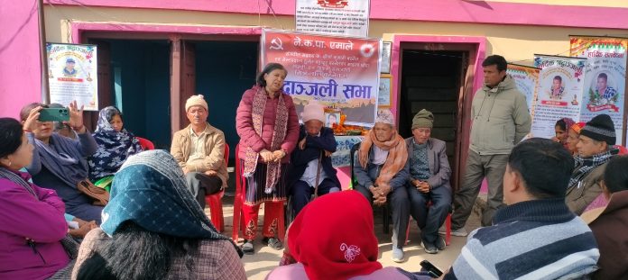 वडा कमिटी अध्यक्ष झग्गु गाैतमकाे अध्यक्षता एवम् नेकपा एमालेका केन्द्रीय सदस्य मेनका पाेख्रेलकाे प्रमुख आतिथ्यता तथा लुम्बिनी प्रदेश कमिटी सचिवालय सदस्य तुलसा केसीकाे विशिष्ट आतिथ्यतामा श्रद्धाञ्जली सभा भएकाे थियाे ।