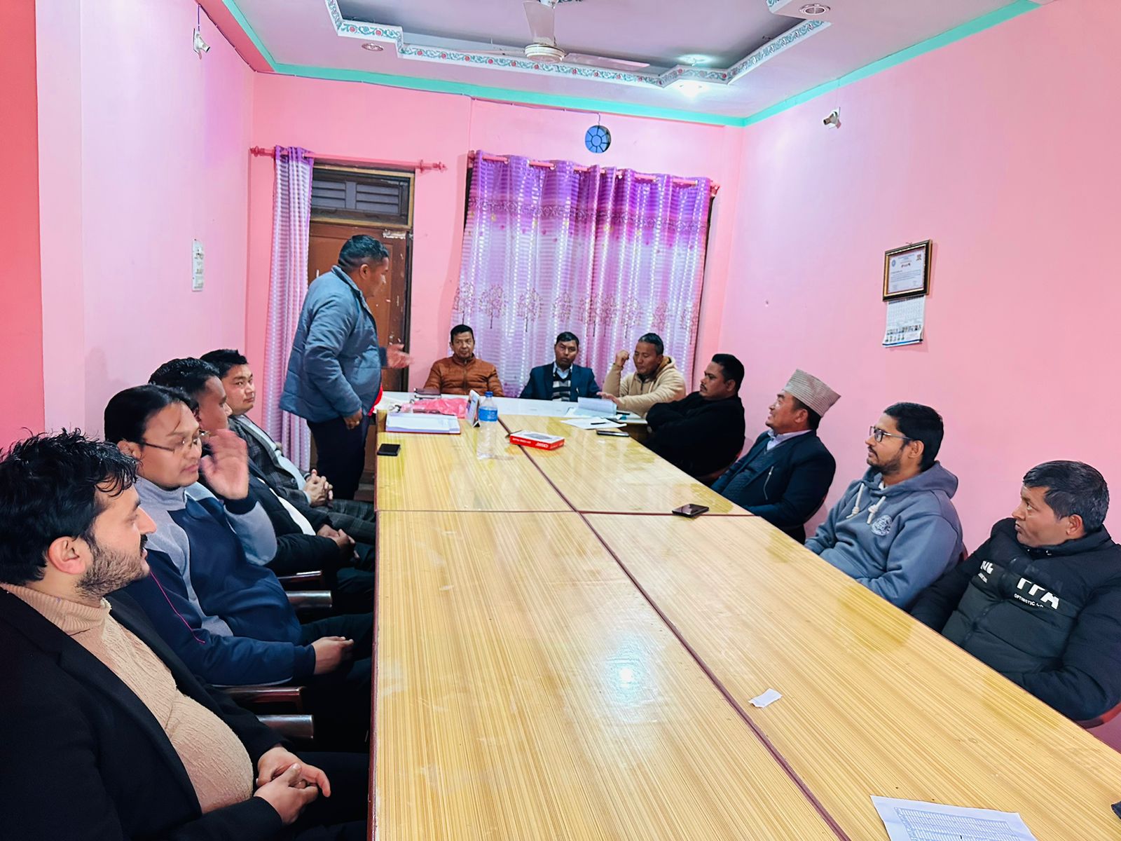 नगर समिति उपाध्यक्ष मानसिङ घर्तीको स्वागत मन्तव्यबाट सुरुभएको बैठकमा प्रमुख सल्लाहकार वीरेन्द्र चन्दले आफ्ना धारणा राख्नुभएको थियो । बैठकको सहजीकरण सचिव विमल भण्डारीले गर्नुभएको थियो ।