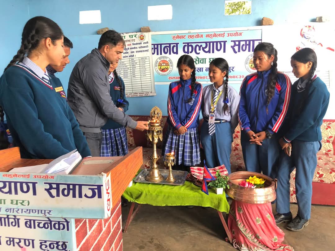 विद्यालयमा अध्ययनरत कक्षा ६ देखि १० कक्षासम्मका विद्यार्थीहरुले घोराही उपमहानगरपालिका–१० नारायणपुरमा रहेको मानव कल्याण समाजद्वारा सञ्चालित सेवाघरमा बसोवास गर्ने बेसहरा तथा अनाथ नागरिकलाई १७ हजार रुपैयाँ सहयोग गरेका हुन ।