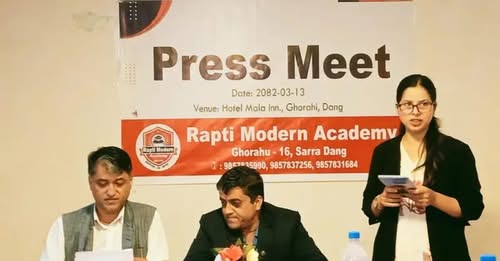 दाङ, असार १४ । राप्ती इन्जिनियरिङ कलेजको व्यवस्थापनमा स्थापना गरिएको राप्ती मोर्डन एकेडेमीले यस वर्षदेखि प्लस टु विज्ञान र व्यवस्थापन कार्यक्रम सञ्चालनमा ल्याएको छ। शुक्रबार आयोजित पत्रकार सम्मेलनमार्फत एकेडेमीले शैक्षिक सत्र २०८२ देखि प्लस टु तहको साइन्स र म्यानेजमेन्ट कार्यक्रम सुरु गरिएको जानकारी गराएको हो।