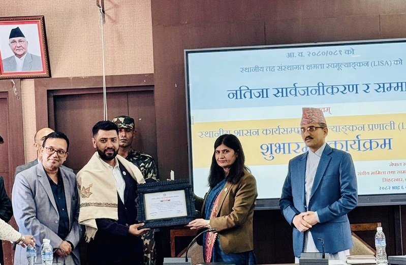 गएको आर्थिक वर्षको स्थानीय तह संस्थागत क्षमता स्वमूल्याङ्कन (लिसा) र वित्तीय जोखिम मूल्याङ्कन (एफआरए) को कार्य सम्पन्न गरी नतिजा सार्वजनिक गरी सर्वोत्कृष्ट ३ गाउँपालिका र ३ नगरपालिकालाई कदरपत्र प्रदान गरिएको छ ।