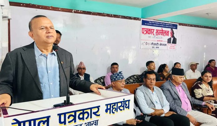 घाेराही, भदाै ७ । नेकपा (एमाले)का महासचिव शंकर पोखरेलले नेपालकै सहमति विना छिमेकी राष्ट्रहरूले नेपाली भूमि प्रयोग गर्नु अनुचित हुने बताउनु भएकाे छ । घोराहीमा शनिबार आयोजित पत्रकार सम्मेलनमा बोल्दै उहाँले लिम्पियाधुरा, लिपुलेक र कालापानी नेपालकै अविभाज्य भाग भएको दोहोर्याउँदै कुनै पनि प्रयत्नलाई अस्वीकार्य ठहरिने बताउनु भयाे ।