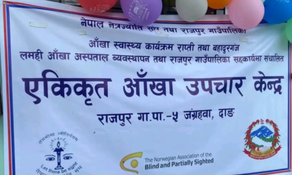 नेपाल नेत्रज्योति संघ अन्तर्गत आँखा स्वास्थ्य कार्यक्रम राप्ती तथा बहादुरगञ्ज लमही आँखा अस्पतालको व्यवस्थापन र राजपुर गाउँपालिकाको सहकार्यमा एकीकृत आँखा उपचार केन्द्र सञ्चालनमा आएको हो।