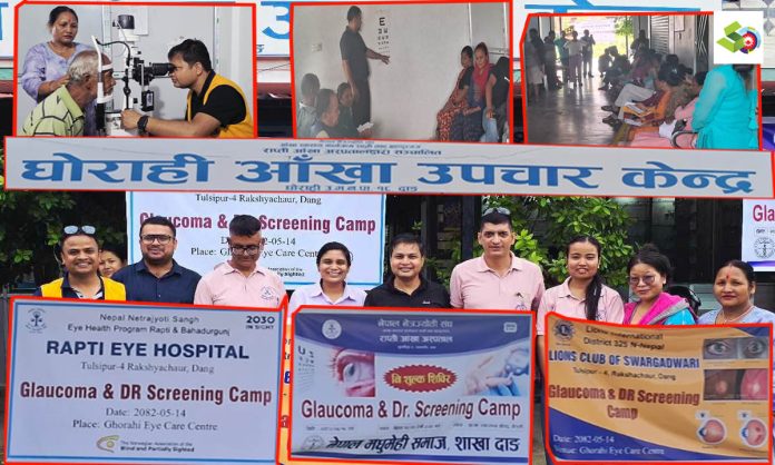 मधुमेही समाज दाङ र लायन्स क्लब अफ स्वर्गद्धारी रक्षाचौरको सहकार्यमा घोराही आँखा उपचार केन्द्र, नवलपुरमा शनिबार सम्पन्न कार्यक्रममा ९१ जनाले सेवा लिएका छन्।