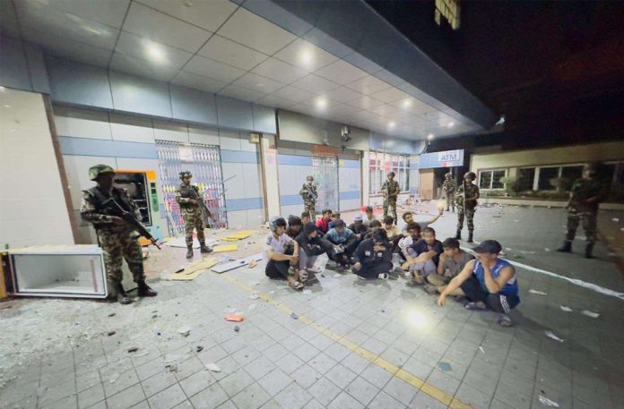 काठमाडौं तथा भक्तपुरका विभिन्न इलाकाहरु (राधेराधेस्थित भाटभटेनी सुपरमार्केट, होटल हायात र बौद्ध इलाका) बाट लुटपामा संलग्न २१ जना पक्राउ परेका हुन् । उनीहरुलाई नेपाली सेनाको टोलीले नियन्त्रणमा लिएको हो ।