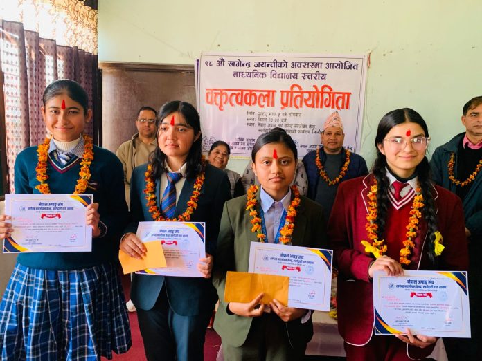 संघका संस्थापक खगेन्द्र बहादुर बस्नेतको ९८ औं जयन्तीका अवसरमा आयोजित ‘नेपालमा अपांगताको अवस्था र सरोकारवालाको भूमिका’ विषयक वक्तृत्वकला प्रतियोगितामा गोर्खा मावि घोराहीकी कक्षा ११ की छात्रा सुप्रिया शर्मा दोस्रो हुनुभएको छ ।